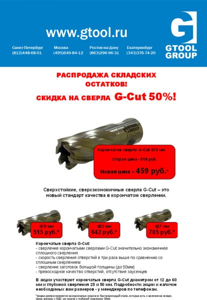 В акции участвуют корончатые сверла G-Cut диаметром от 12 до 60 мм и глубиной сверления 25 и 50 мм.